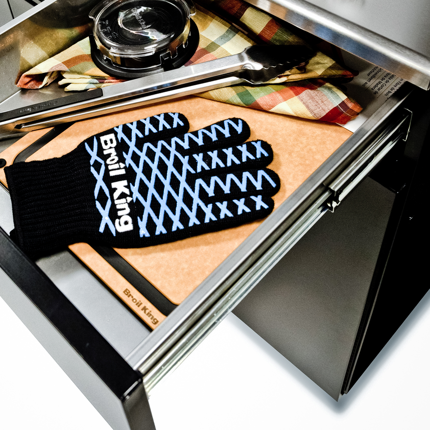 - Les grilles de cuisson sont en tiges d’acier inoxydable de 8 mm, offrant durabilité et rétention de chaleur optimale. Le système de cuisson Flav-R-Wave™ en acier inoxydable vaporise les jus de cuisson pour ajouter une saveur riche aux aliments tout en réduisant les flambées. L’allumage électronique assure un démarrage rapide et fiable. Les boutons de commande rétroéclairés facilitent l’utilisation même dans des conditions de faible luminosité. Le chariot en acier galvanisé comprend des tiroirs de rangement, une armoire de rangement et des portes et tiroirs à fermeture douce. Le plan de travail en acier inoxydable offre un espace de préparation pratique.