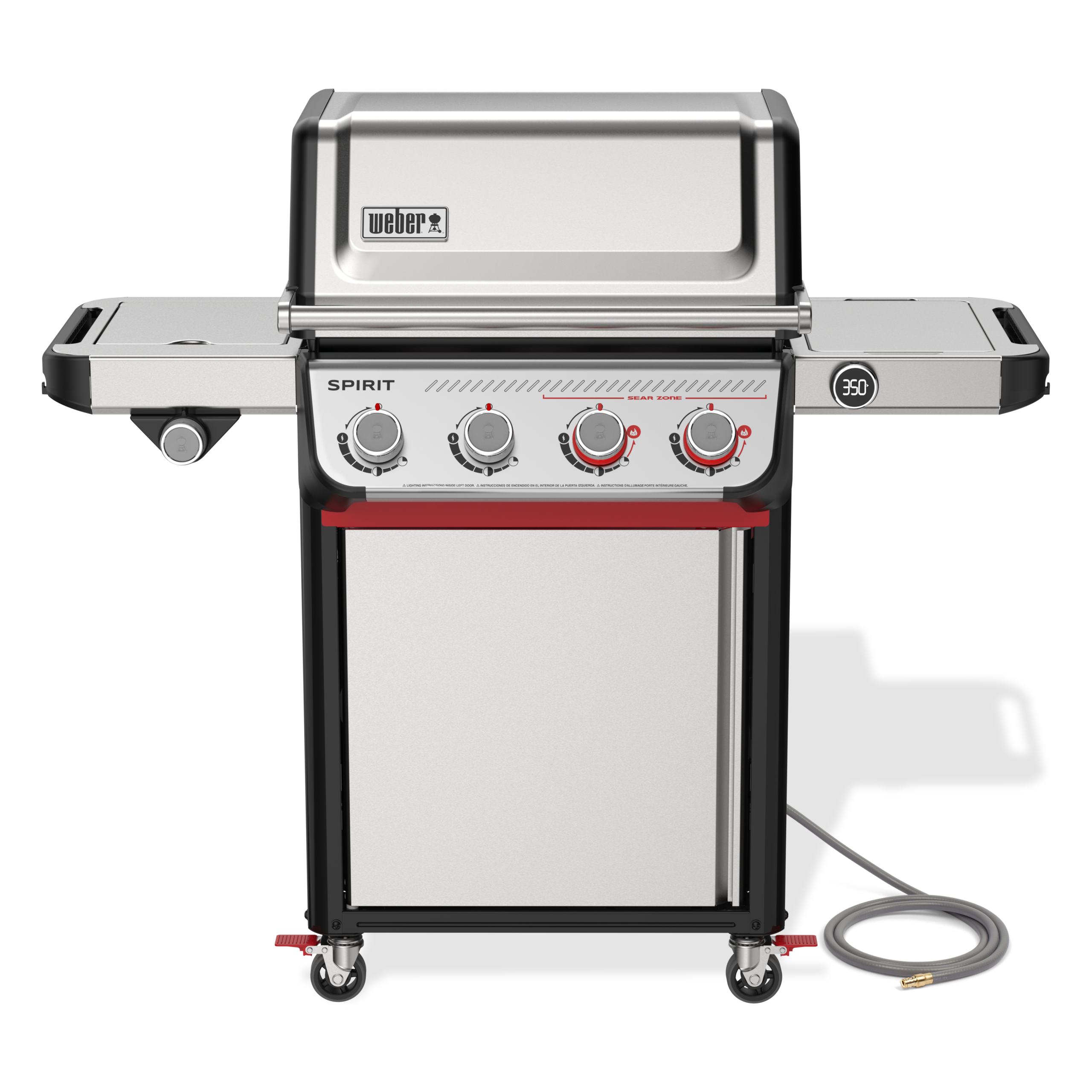 Grillez des aliments plus savoureux que jamais sur le barbecue au gaz en acier inoxydable réinventé Spirit SP-435 à 4 brûleurs avec Zone de saisie et brûleur latéral. Créez des marques de saisie uniques et savoureuses sur la viande, le poisson et les légumes avec deux boutons de brûleur Boost rouges qui libèrent une puissance supplémentaire de 40 % dans la Zone de saisie. Allumez facilement chaque brûleur d’une main grâce à la technologie d’allumage Snap-Jet et réglez la chaleur avec précision sur toute la plage de températures, de feu doux à feu vif et tous les niveaux intermédiaires. Voyez la température de cuisson en un coup d’œil grâce à un thermomètre numérique facile à lire de jour comme de nuit. Maximisez votre espace en ajoutant une variété d’accessoires à insérer Weber Works (vendus séparément) à la tablette latérale et des accessoires à enclencher (vendus séparément) aux rails latéraux. Transformez votre barbecue en plancha avec une plancha encastrable antirouille (vendue séparément) ou transformez votre barbecue en four à pizza, wok, cocotte, et bien plus encore en ajoutant un ensemble de cadre et entretoise et des ustensiles de barbecue sur mesure Weber Crafted (tous vendus séparément).